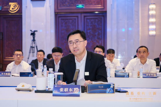 在下午的会议交流环节,江苏洋河酒厂股份有限公司党委书记、董事长张联东以《固本正源开新路行稳致远启新程》为题在会上发表了演讲。他说:
